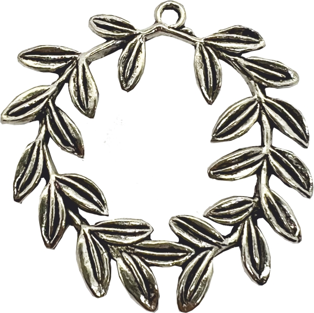 Μεταλλικό αξεσουάρ μπομπονιέρας στεφάνι από κλαδιά ελιάς χρώματος ασημί σε μέγεθος 4 cm