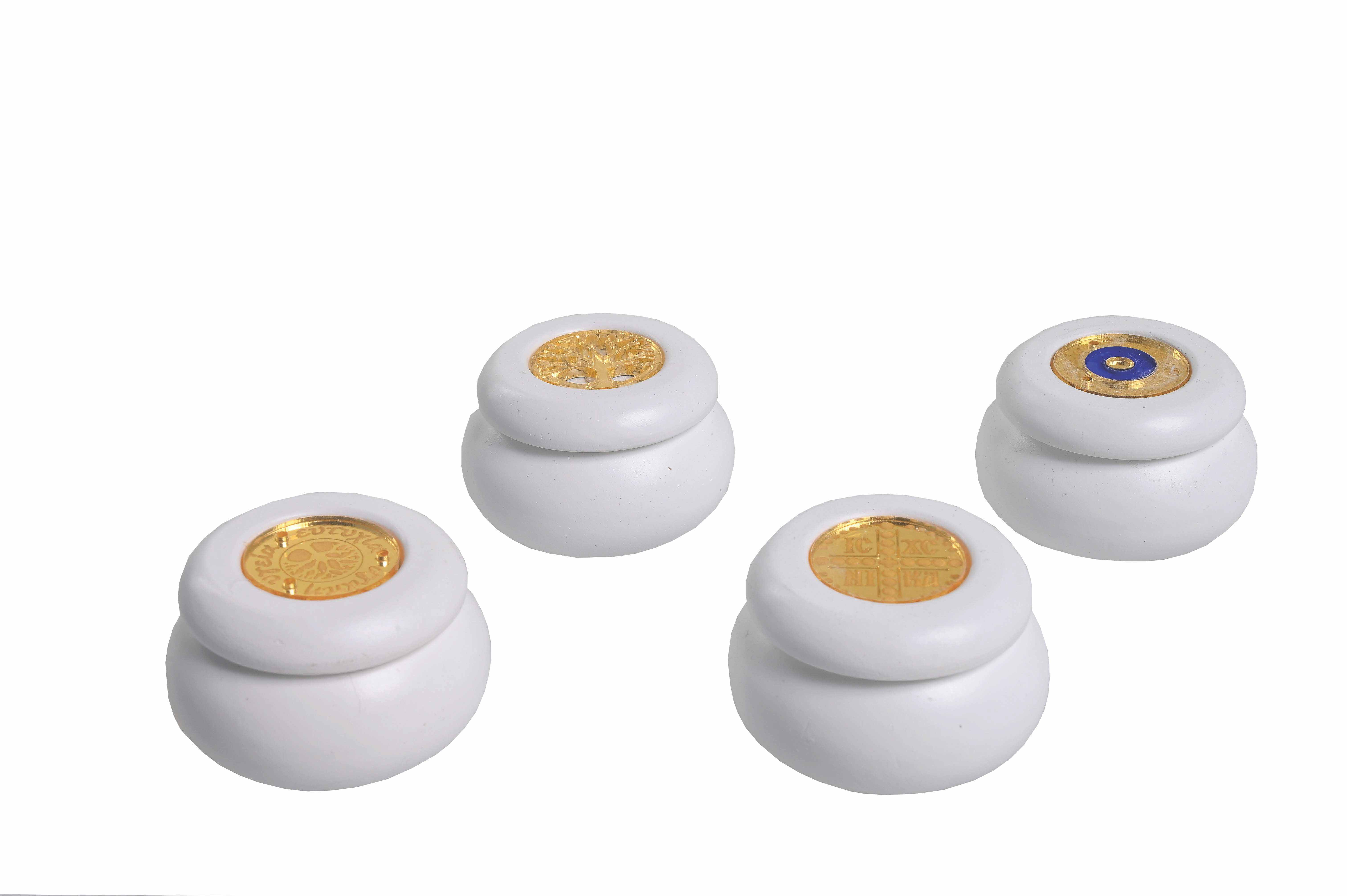 Μπομπονιέρα Κεραμική Μπιζουτιέρα σε σχήμα μακαρόν με Plexi Glass διάφορα σχέδια