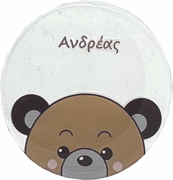 με ζωγραφιά αρκουδάκι και όνομα.