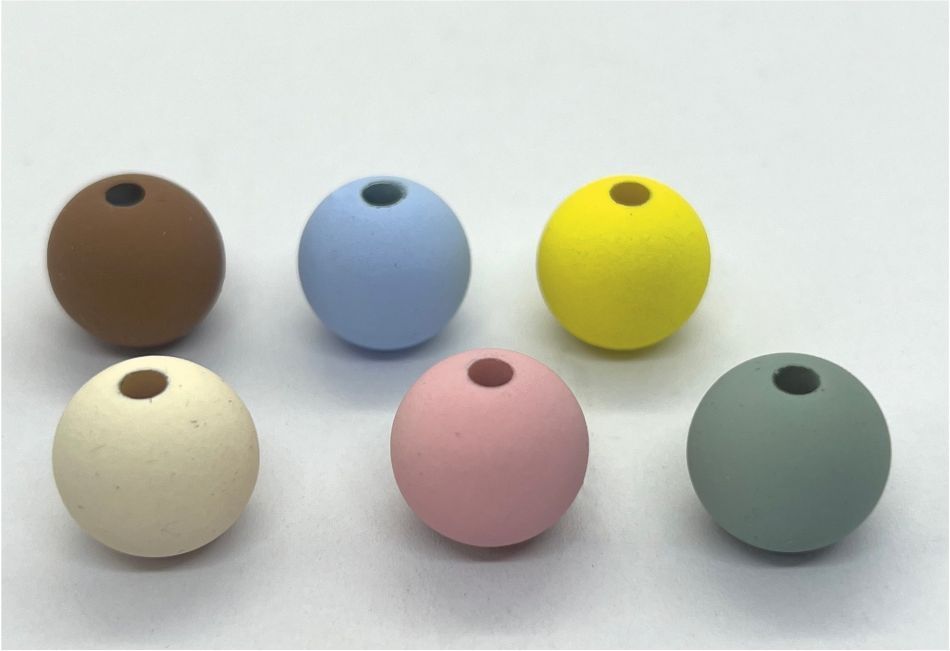 Αξεσουάρ μπομπονιέρας χάντρα πλαστική ματ σε έξι χρώματα : σιέλ, ροζ, καφέ, εκρού, κίτρινο και πετρόλ σε μέγεθος 1,5 cm